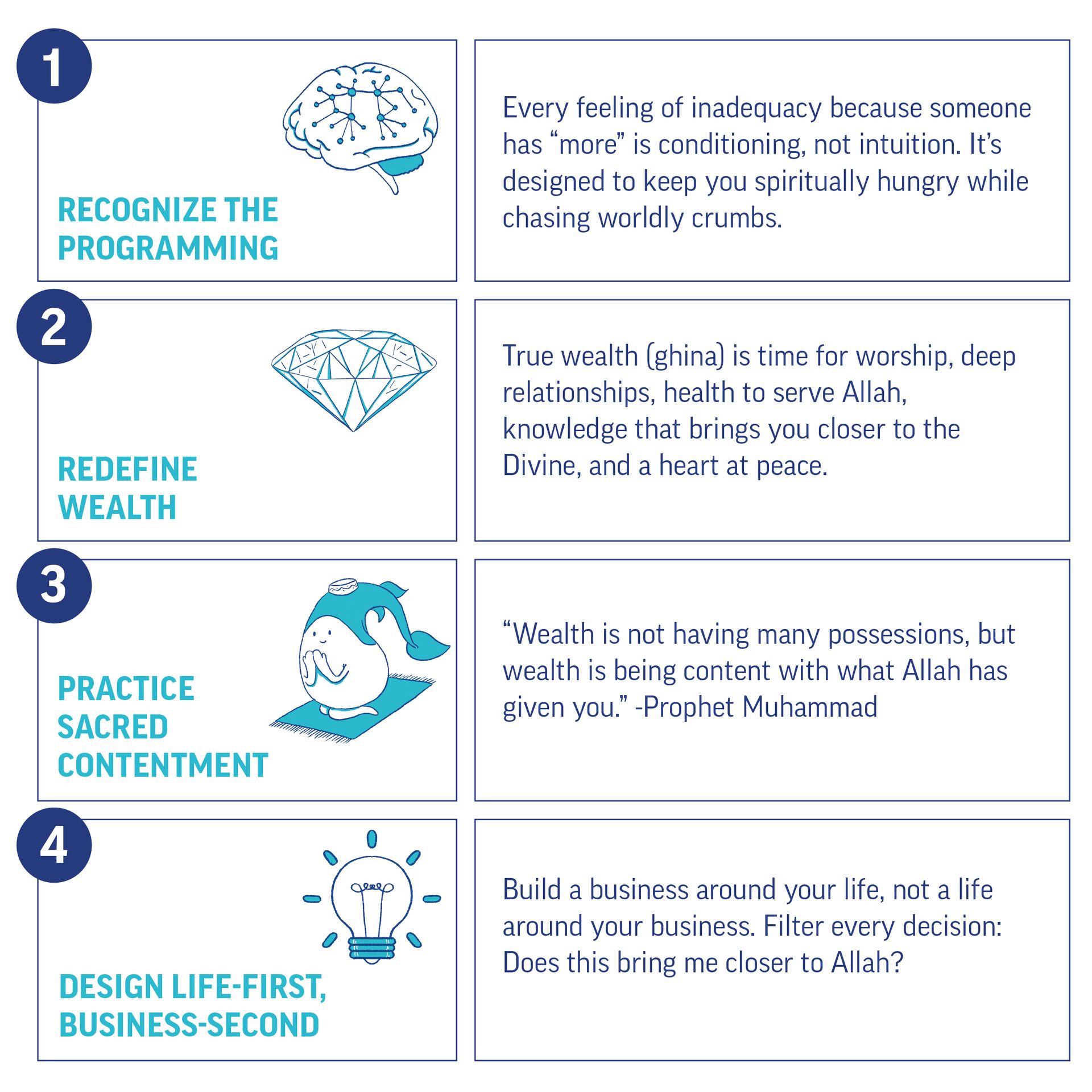 True wealth (ghina) = Time for worship + Deep relationships + Health to serve Allah + Knowledge that brings you closer to the Divine + A heart at peace.